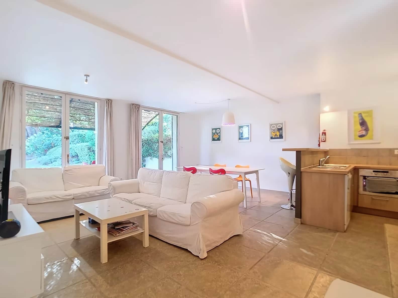 Elle se compose de trois chambres avec 2 lits en 160x200 et un lit en 140x200, 2 salles de bains , une pièce de vie spacieuse et lumineuse et une terrasse ombragée par une jolie tonnelle . Sa climatisation à l'étage vous permettra de rafraichir la maison pendant les périodes chaudes